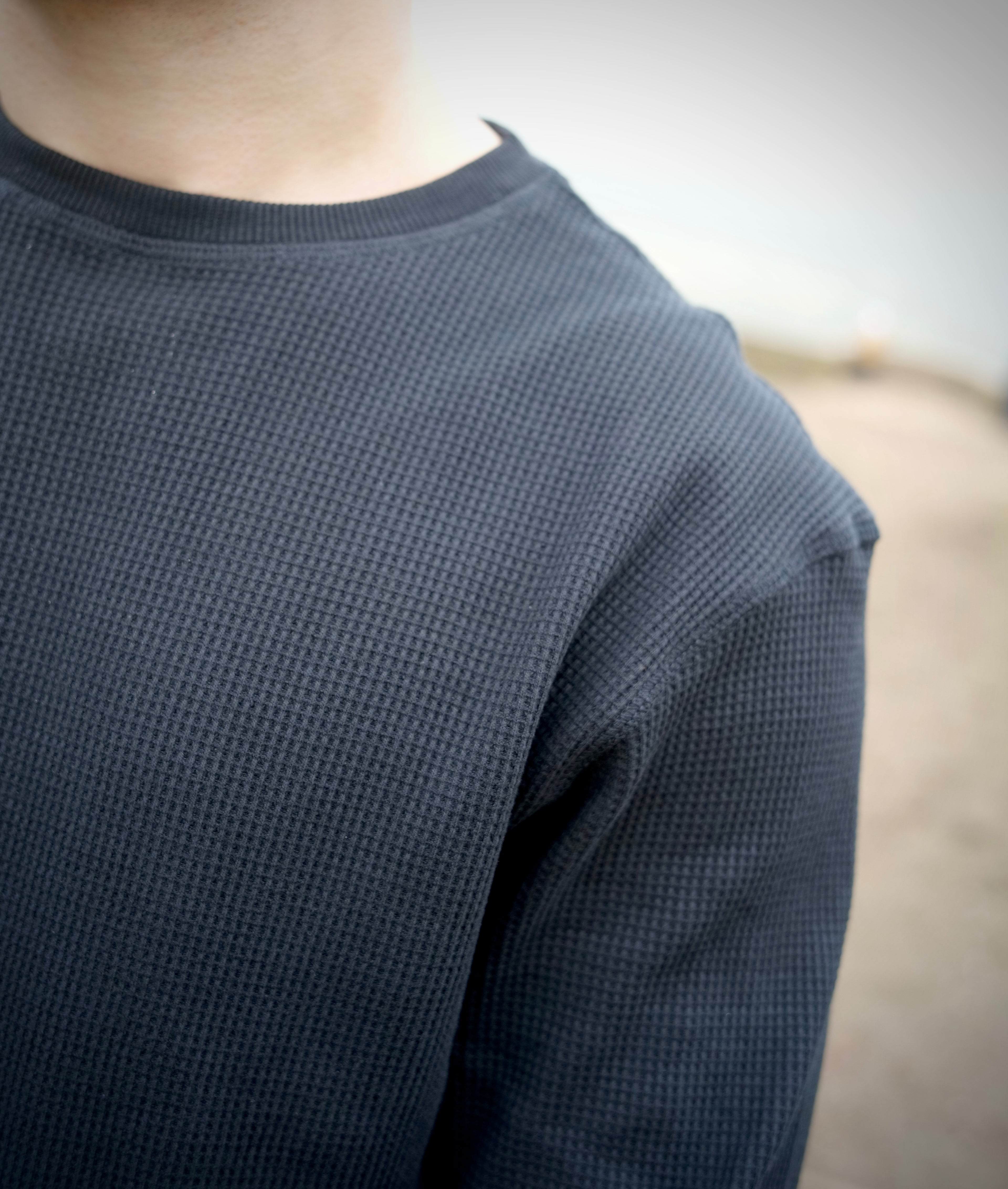 BLACK WAFFLE BLANK - Long sleeve